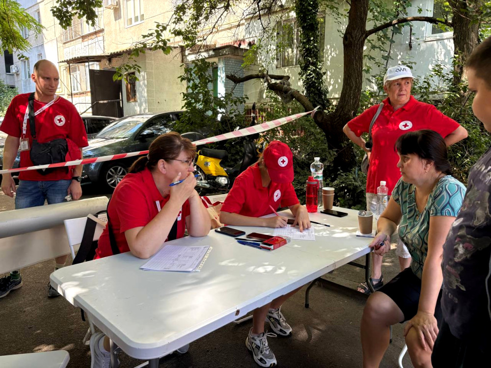Товариство Червоного Хреста з ночі надавало допомогу постраждалим. Вдень вони продовжили свою діяльність на місці — роздавали плівку, тарпаулін та набори першої допомоги.